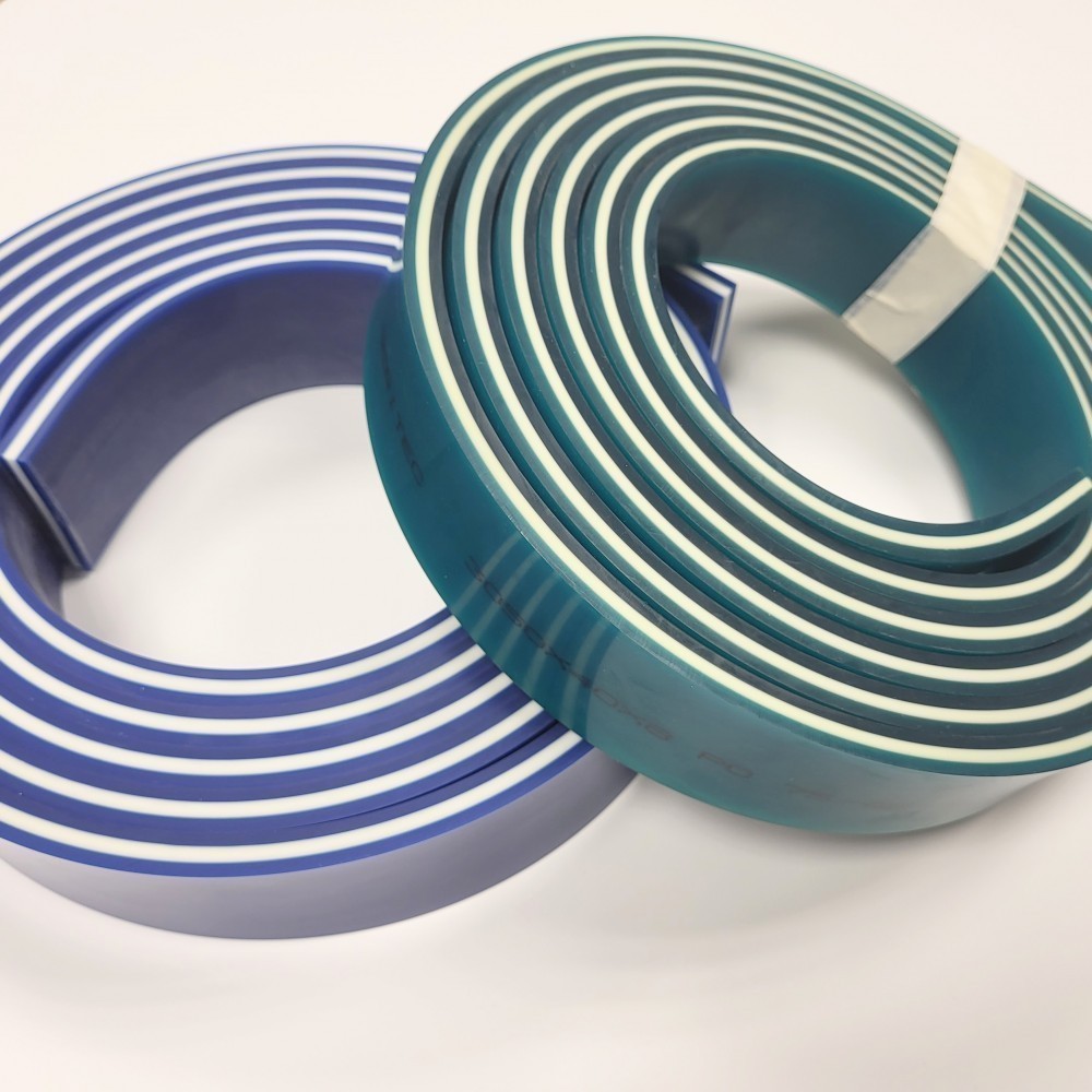 Double-layer squeegees grant higher quality in printing even where it is necessary to print with a soft blade. The hard layer increases the stability of the squeegee.